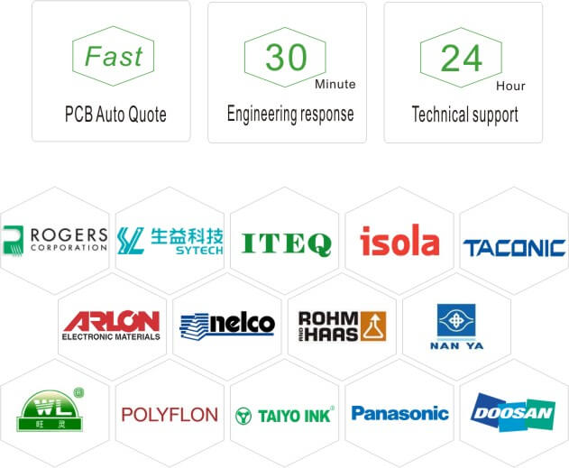 選用品牌PCB板材:臺灣南亞,臺耀,聯茂,生益,建滔KB,Isola,Rogers,旺靈,Taconic。常備庫存PCB材料:SI643HU,SI10U,HL832NXA,HL832NS,fr408,370hr,tu872,ro4350b,ro4003c,rt5880,ro3003,it180,f4bm等。